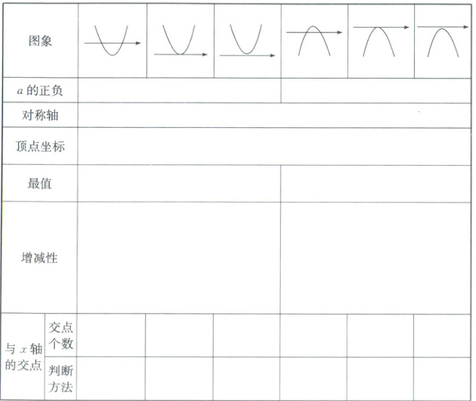 2.(由左到右,由上到下$)a\gt0 a\lt0 $直线$x=-\frac {b}{2a} (-\frac {b}{2a},\frac {4ac-b^{2}}{4a}) $最小值$\frac {4ac-b^{2}}{4a} $最大值$\frac {4ac-b^{2}}{4a}$