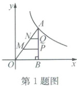 1. (2024·台州椒江)如图,△ABO的顶点A在反比例函数$y=\frac{k}{x}$($x>0$)的图象上,∠ABO=90°,过边AO的三等分点M,N分别作x轴的平行线交AB于点P,Q.若四边形OMPB的面积为5,则k的值为(