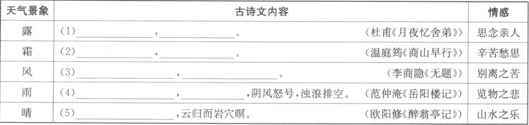 2.根据天气景象,完成古诗文名句梳理。(9分)