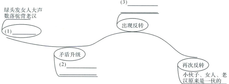 4.根据小说内容,完成下面的思维导图,体会情节的一波三折。(3分)