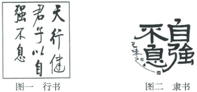示例一:我选图一的行书。 行书以流畅、自然的笔触和自由的布局为特点。这种书写方式传递出一种动态、活泼而自由的气息。自强不息强调的是不断进取、永不放弃的精神,而行书的书写过程也要求书写者保持流畅、连贯的笔触,不断探索新的表达方式和技巧,两者契合。 示例二:我选图二的隶书。 隶书笔画平直而有力,这种特点象征着坚韧不拔、勇往直前的精神。这与自强不息中强调的不断进取、永不放弃的精神状态高度契合。