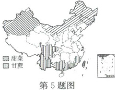 5. (2025·宁波镇海)右图是我国糖料作物的主要分布图,其中甘蔗主要分布的省区有 (