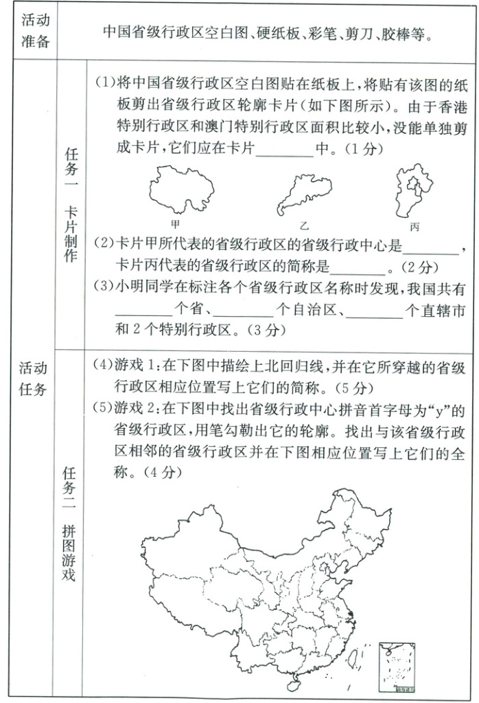 26. (15 分)某校开展“制作中国省级行政区地图卡片”主题学习活动,请你一起参与。