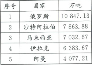 10. 2024 年中国石油进口前五大来源国中,地跨欧亚两大洲的国家是 (