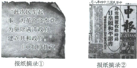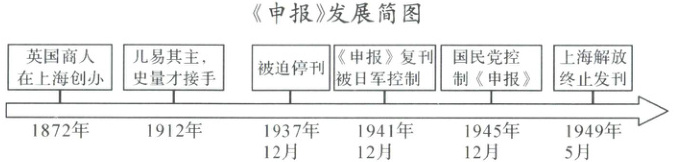 (2)1937年11月,淞沪会战失败,日军占领上海,《申报》被迫停刊;1945年,渡江战役胜利,国民党反动统治覆亡,《申报》终止发刊。(4分)