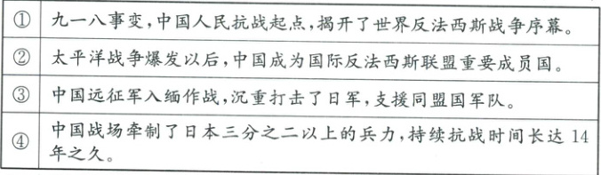)A.中国在国际反法西斯联盟中占据主导地位