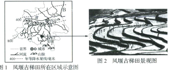 阶梯。(3 分)(2) 根据材料,分析该地有利于梯田灌溉的水源条件。(4 分)