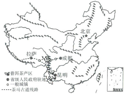 “茶马古道”是历史上汉藏民族之间茶马互换的贸易通道。读“茶马古道路线分布图”,回答第 11~12 题。