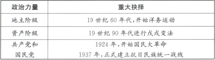 30. (10 分)近代以来,我国的仁人志士和各种政治力量,在面对历史关键问题迎难而上,做出了抉择。阅读材料,完成问题。