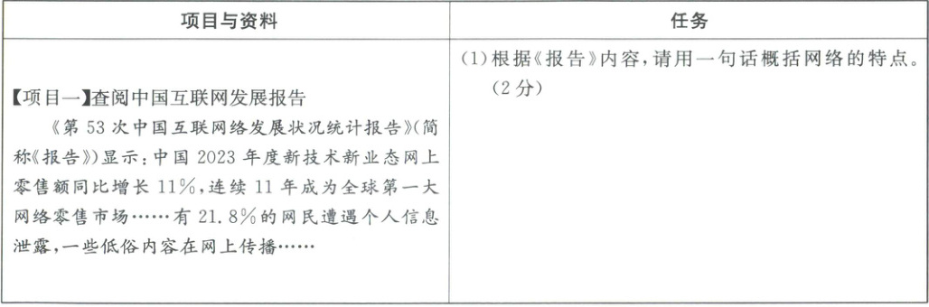 (1)网络是把双刃剑(或网络有利有弊)。(2分)