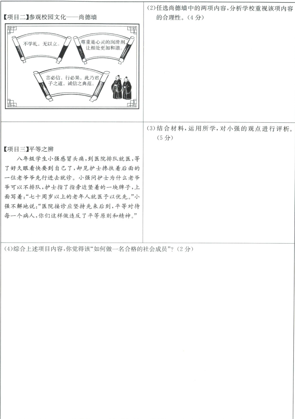 31. (13 分)某校道德与法治兴趣小组以“如何做一名合格的社会成员?”为驱动性问题,开展了项目化学习,我们一起参与。