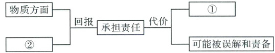 25. 在道德与法治课上,老师出示了“承担责任”的知识导图,以下是知识导图部分内容。①②处应填写的内容是 (