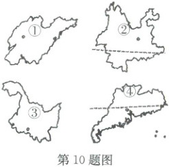 10. 下图中我国少数民族分布最多的省级行政区是 (