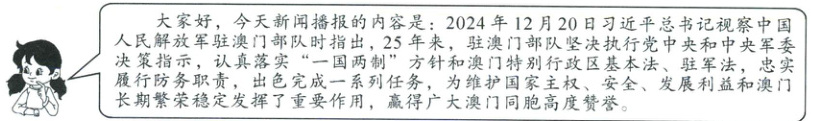 在学习《筑牢坚不可摧的钢铁长城》这一课时,同学们进行了时政播报。请听播报,回答第 21 题。
