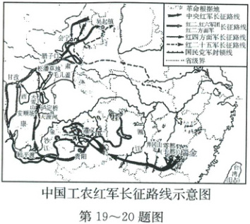 红军长征是中国革命史的伟大传奇。据此,回答第 19~20 题。