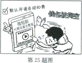 25. 同学们用右侧漫画反映网络微短剧行业发展中的又一现象。面对如此遭遇时,我们应当 (