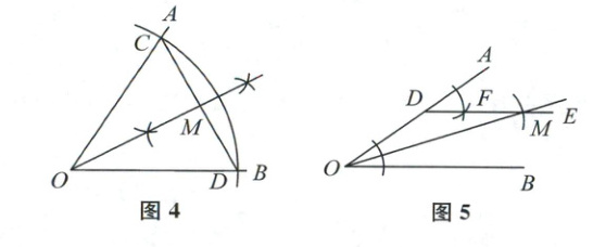 方法 4:如图 4,① 以点 O 为圆心,任意长为半径作弧,分别交射线 OA、OB 于点 C、D;