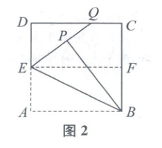 (2) 折叠过程中,该小组惊喜地发现了一种折正方形边长三等分点的方法:如图 2,若将 AB 沿 BE 翻折到 BP 位置,延长 EP 交 CD 于点 Q,则点 Q 是正方形边 CD 的三等分点. 试证明该小组的发现.