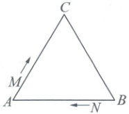 2. 如图,在△ABC 中,AB = BC = AC = 12 cm,现有两点 M、N 分别从点 A、B 同时出发,沿三角形的边运动,已知点 M 的速度为 1 cm/s,点 N 的速度为 2 cm/s. 当点 N 第一次到达点 B 时,M、N 两点同时停止运动. 点 M、N 运动几秒时,可得到等边三角形 AMN?