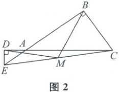 (1)如图1,若点$E$在线段$AB$上,探究线段$BM$与$DM$及$\angle BMD$与$\angle BCD$所满足的数量关系,并直接写出你得到的结论;