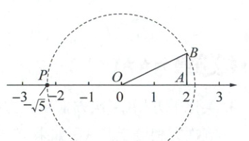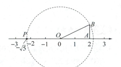 (1)由数到形:在数轴上用尺规作图作出表示$-\sqrt{5}$的点$P$(不要写作法,保留作图痕迹)。