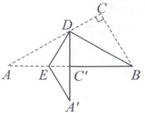 2. 如图的实线部分是由 Rt△ABC 经过两次折叠得到的,首先将 Rt△ABC 沿 BD 折叠,使点 C 落在斜边上的点 C'处,再沿 DE 折叠,使点 A 落在 DC'的延长线上的点 A'处. 若图中∠C = 90°,DE = 3 cm,BD = 4 cm,求 DC'的长度.