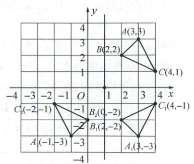 利用轴对称和中心对称的性质,分析对应点坐标的数量关系,在平面直角坐标系中定点画图。