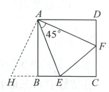 $AB = AD$,$\angle BAD = \angle B = \angle D = 90^{\circ}$ $\angle BAE + \angle DAF = 45^{\circ}$