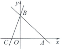 如图,直线 $ AB:y = -x - b $ 分别与 $ x $、$ y $ 轴交于 $ A $、$ B $ 两点,过点 $ B $ 的直线交 $ x $ 轴的负半轴于点 $ C $。若点 $ A(6,0) $,且 $ OB:OC = 3:1 $。