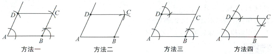 依据平行四边形不同的判定方法需满足的不同的条件作图