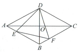 菱形 $ABCD$,$\angle DAB = 60^{\circ}$,$E$、$F$ 分别是边 $AB$、$BC$ 上的两个动点,且满足 $AE = BF$。