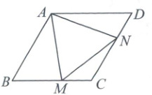 1. 如图,已知菱形 $ABCD$ 的边长为 $2$,$\angle ABC = 60^{\circ}$,点 $M$、$N$ 分别是边 $BC$、$CD$ 上的两个动点,$\angle MAN = 60^{\circ}$,连接 $MN$。