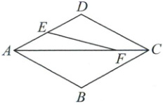 2. 如图,四边形 $ABCD$ 是菱形,$\angle DAB = 60^{\circ}$,点 $E$ 是 $DA$ 的中点,$F$ 是对角线 $AC$ 上一点,且 $\angle DEF = 45^{\circ}$,求 $AF:FC$ 的值。