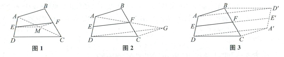 方法三,如图 3,将四边形 $ABCD$ 绕点 $F$ 旋转 $180^{\circ}$ 得到四边形 $A'CBD'$,连接 $AD'$、$DA'$、$E'F$,