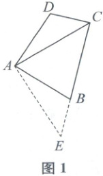 方法二,如图 1,将 △ADC 绕点 A 顺时针旋转,使边 AD 与边 AB 重合,得到 △ABE,