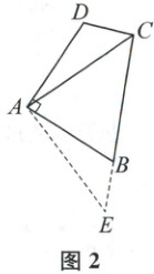 如图 2,延长 $CB$ 到点 $E$,使 $BE = DC$,连接 $AE$,