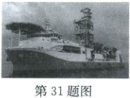 31. (7 分)2024 年 11 月 17 日,由我国自主设计建造的首艘大洋钻探船“梦想”号在广州正式入列。“梦想”号排水量 42600 吨,全球海域无限航行。请回答下列问题。(海水的密度 ρ 取 1.0×10³ kg/m³)