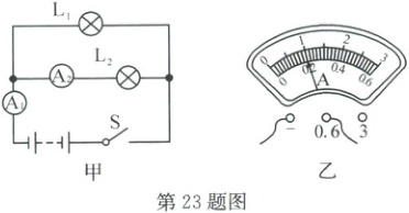 23. 同学们利用图甲电路研究“并联电路电流的特点”,已知电源电压为 3 V。