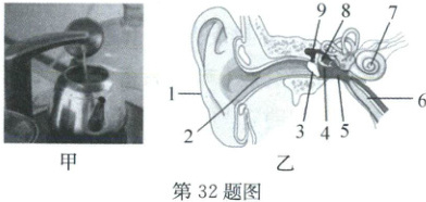 传到耳朵里。人耳中听觉感受器位于图乙中的7