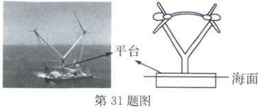 31. (6 分)2024 年 12 月 11 日,全球单体容量最大的漂浮式风电平台“明阳天成”号在广东阳江正式投运。这是全球首个采用双塔筒、双叶轮、双主机设计以及应用拉索系统的风电平台,设备最高处达 219 米,作业工况下平台排水总量达 1.5 万吨。