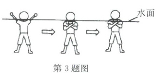 3. 游泳时,将露出水面的双手浸入水中可以获得更大的浮力,使人上浮防止溺水,如图所示。手浸入水中的过程中,浮力增大的原因是(