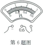 6. 电流不仅有方向,还有大小。某次测量中电流表示数如图所示,其读数为(