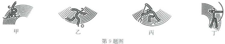 9. 下图甲、乙、丙、丁为参赛队员进行的四个体育项目图标,有关这四项运动分析正确的是(