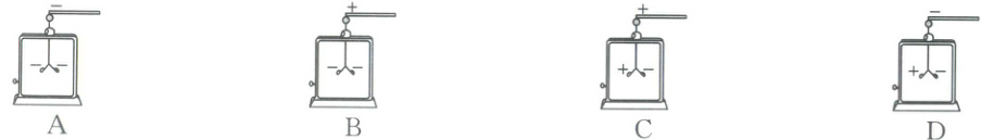 4. 将毛皮摩擦过的橡胶棒接触验电器,能正确表示橡胶棒和验电器金属箔片带电情况的图是(