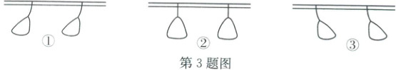 3. (2025·玉环)如图所示是小玉乘坐公交车时看到车从某一站点向右直线行驶,经历启动、匀速行驶、减速进站到静止的过程,拉手所处的不同状态。在这一过程中,下列说法错误的是(