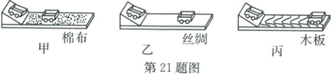 21. (2025·杭州滨江)(8分)在探究“阻力对物体运动的影响”时,使用的器材有斜面、木板、棉布、丝绸和小车。