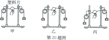 。(2分)(3)若左端的滑轮向下移动一段距离后,调整塑料片的位置如图丙所示,请你判断手放开后塑料片将