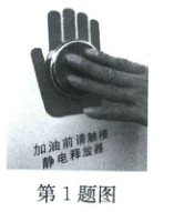 1. (2025·嵊州)如图是加油站里常见的“静电释放器”。司机或工人提着油枪加油前,必须用手触摸安装在地面上的金属球,以清除身上的静电。下列说法中正确的是()
