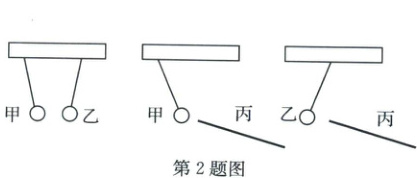 2. (2025·温岭)甲、乙是两个轻质泡沫小球,丙是用丝绸摩擦过的玻璃棒,三者相互作用时的情景如图。则下列判断正确的是()