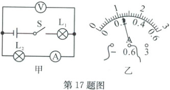 17. (2025·杭州上城)如图甲所示电路,闭合开关后,整个电路正常工作。此时电流表示数如图乙所示,则电流表的示数为